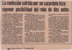 | Nota del periódico El Siglo de Torreón, "La confusión sufrida por un sacerdote hizo suponer posibilidad del robo de dos autos". |