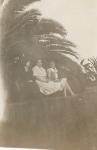 Fotografía en contrapicada de tres mujeres sentadas en una banca, sobre ellas se asoman hojas similares a las de palmeras. Se observa mucha vegetación. Imagen en álbum 1.