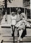 Fotografía en exterior de una mujer sentada con dos niños o niñas. Uno de ellos en su regazo. Imagen en álbum 1.
