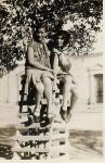 Fotografía en exterior de dos mujeres sentadas sobre la cerca de protección que rodea a un árbol. Imagen en álbum 1.