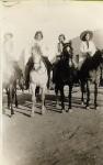 Fotografía en exterior de cuatro mujeres, cada una en un caballo. Imagen en álbum 1.