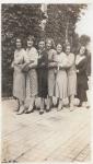 | Grupo de siete mujeres sonrientes, de pie y en posición de costado, una tras otra. En la parte posterior aparecen sus nombres: "Margarita, M. Luisa S, Myra Mitchell, M. Antonia, yo, Chelo, Carmelita Ferrer". En la parte posterior aparece un sello: "La Foto. Madero 42".