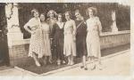 | Fotografía de un grupo de siete mujeres en exterior. En la parte posterior tiene un sello que dice: "La Foto. Madero 42".