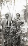 Fotografía de una pareja en exterior, frente a un arbusto. Imagen en álbum 1.