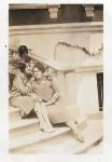 dos mujeres y una niña, sentadas sobre una escalinata. La imagen tiene una dedicatoria al reverso, dice: "Uno de tantos como siempre. A mi querida hermanita Rosa Ma. de Tencha". Imagen en álbum 1.