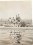 Dos mujeres jóvenes y dos niños, en traje de baño, se encuentran al pie de lo que parece un estanque en el campo. Imagen en álbum 1.