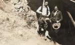 Imagen de dos hombres con atuendos vaqueros, ambos llevan un sombrero en sus manos. Se encuentran en el campo. Al reverso de la fotografía se ve el número 829, escrito a modo de sello, y también dice "México, D.F". Imagen en álbum 1.
