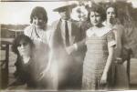 Un grupo de cuatro personas, cuatro mujeres y un hombre con sombrero, observan a la cámara. Una de ellas parece mayor. Se encuentran de pie, al aire libre. Imagen en álbum 1.