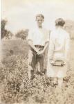 Fotografía de un hombre y una mujer enmedio de un plantío, en el campo: él observa de frente, ella de espalda. Parece una pose. Imagen en álbum 1.