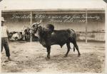 | Toro Zebú (cebú) G y R, 6 años. Prop. José Fernández. Torreón, 1925. Fotografía dentro del álbum: "Gran Feria del Algodón. 1925. Torreón, Coah. Sosa, Fot".