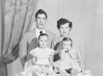 | Pareja con dos niñas sentadas sobre una superficie plana. |