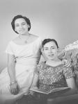 | Dos señoritas sentadas en un sillón.