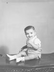 | Bebé sentado sobre una mesa.